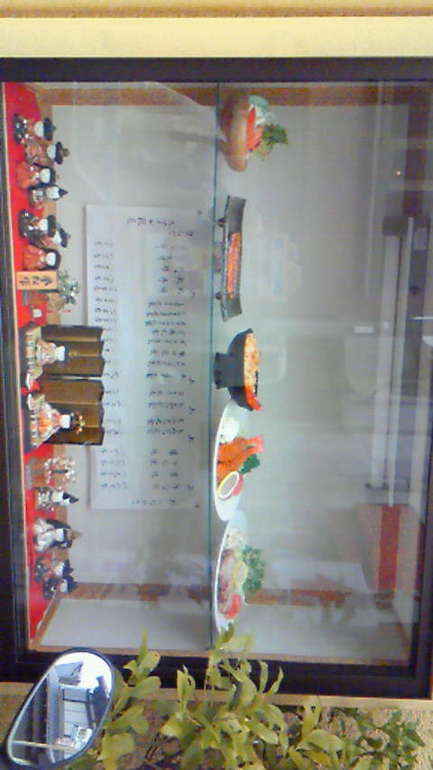 季節限定特別メニュー お店のメニューと一緒にお雛さまサンプルとお雛さまが同居しているのが面白くていいと思うのです1年前からお気に入りのお雛さまですその時も写真は撮ったのですが、小さいサイズでわかりづらい写真だったのでアップはしていませんでしたここで残念なことに携帯の電池切れ(T_T)というか、カメラを起動して開いたままポケットに入れたことをすっかり忘れていたのでした…デジカメと携帯と…って交互に撮っていると、どうしてもどちらかが疎かになってしまうのですよね