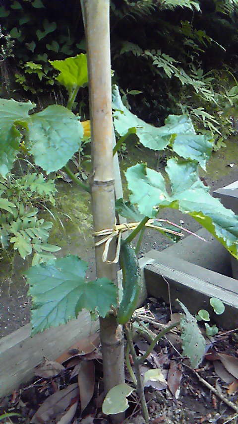 三渓園内の茅葺屋根のお家の庭に胡瓜が植わっていたのでパチリ