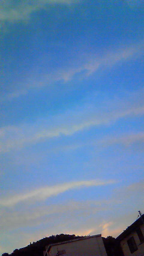 夕焼けとは反対の空に、たぶん飛行機雲が幾筋も出来ていたのでパチリ