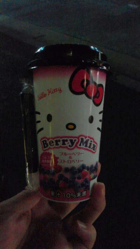 買わずにはいられない コンビニでキティな飲み物を発見ついつい買ってしまう私そして暗がりの中でも写真を撮る根性まぁ、飲み物を買いに入ったので余計な買い物ではないのですよというのは自分を正当化するための言い訳